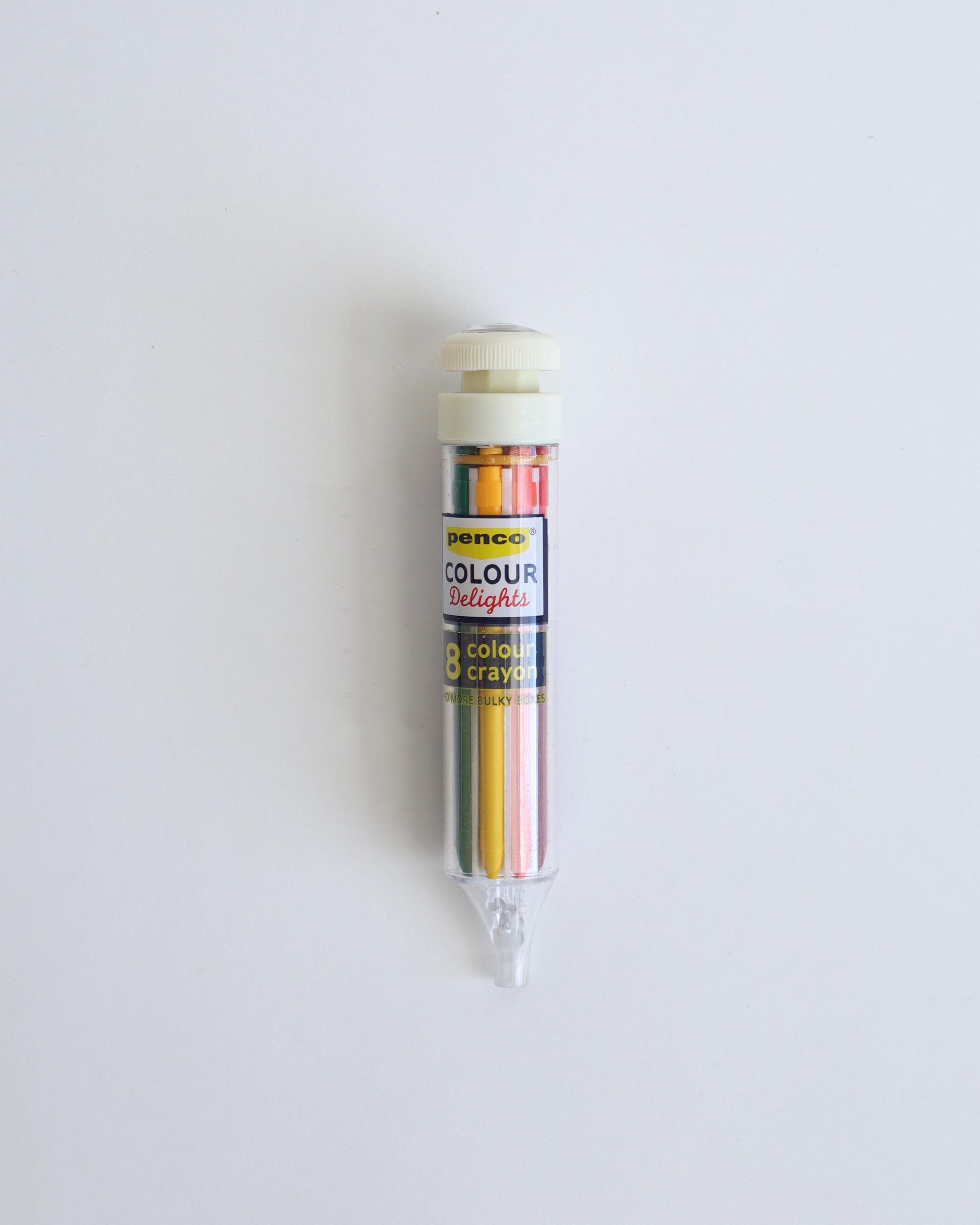 A single mechanical pencil that houses multiple colored crayon leads in one compact tool.