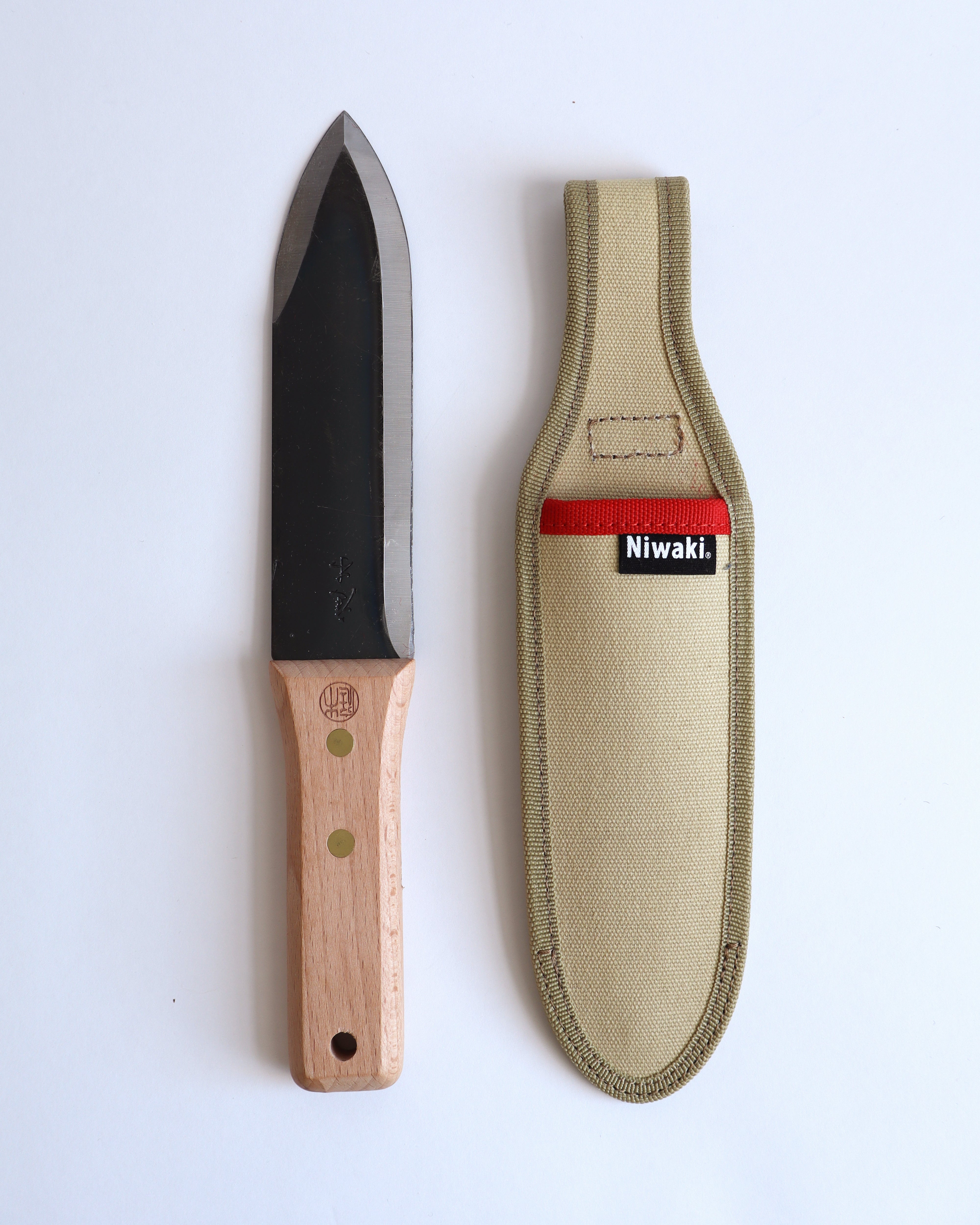 A heavy-duty Japanese garden knife designed for digging, weeding, planting, and cutting. Sharper and tougher than standard hori hori knives, this is a true all-purpose garden tool.
