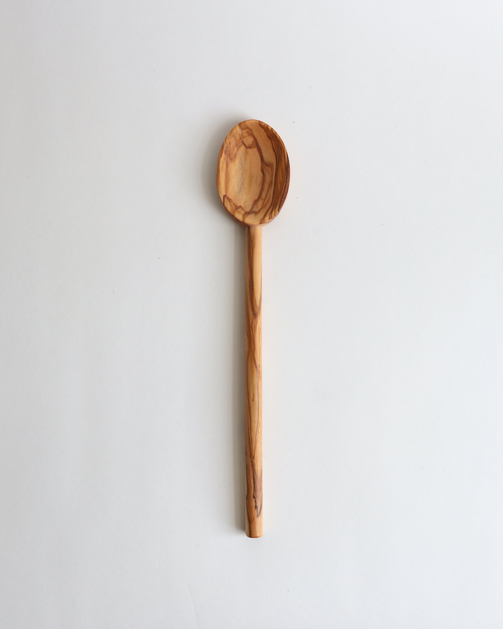 An olive wood cooking spoon designed for everyday stirring, mixing, and serving.