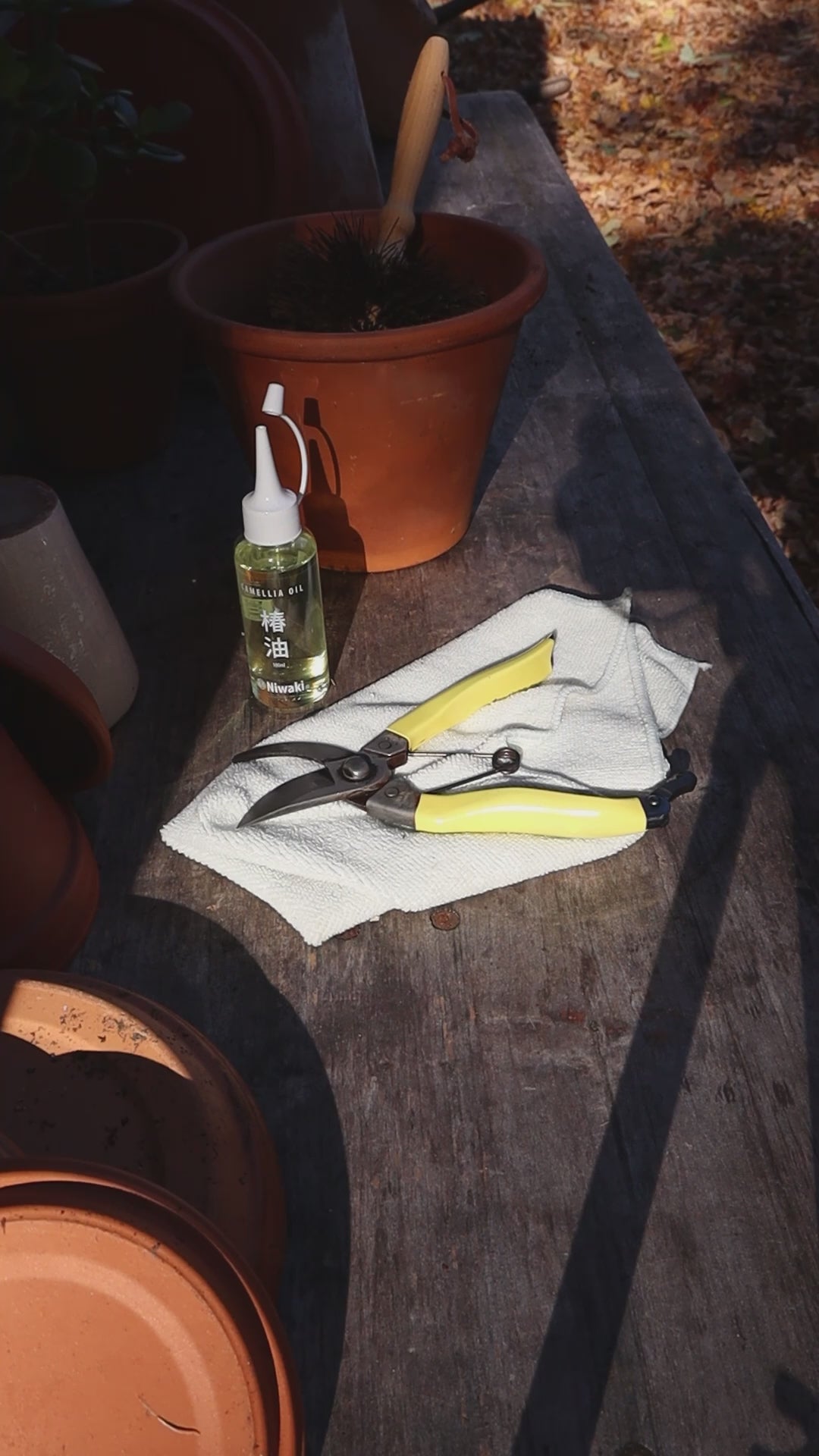 Compact Japanese pruning secateurs designed for smaller hands and precise garden work.