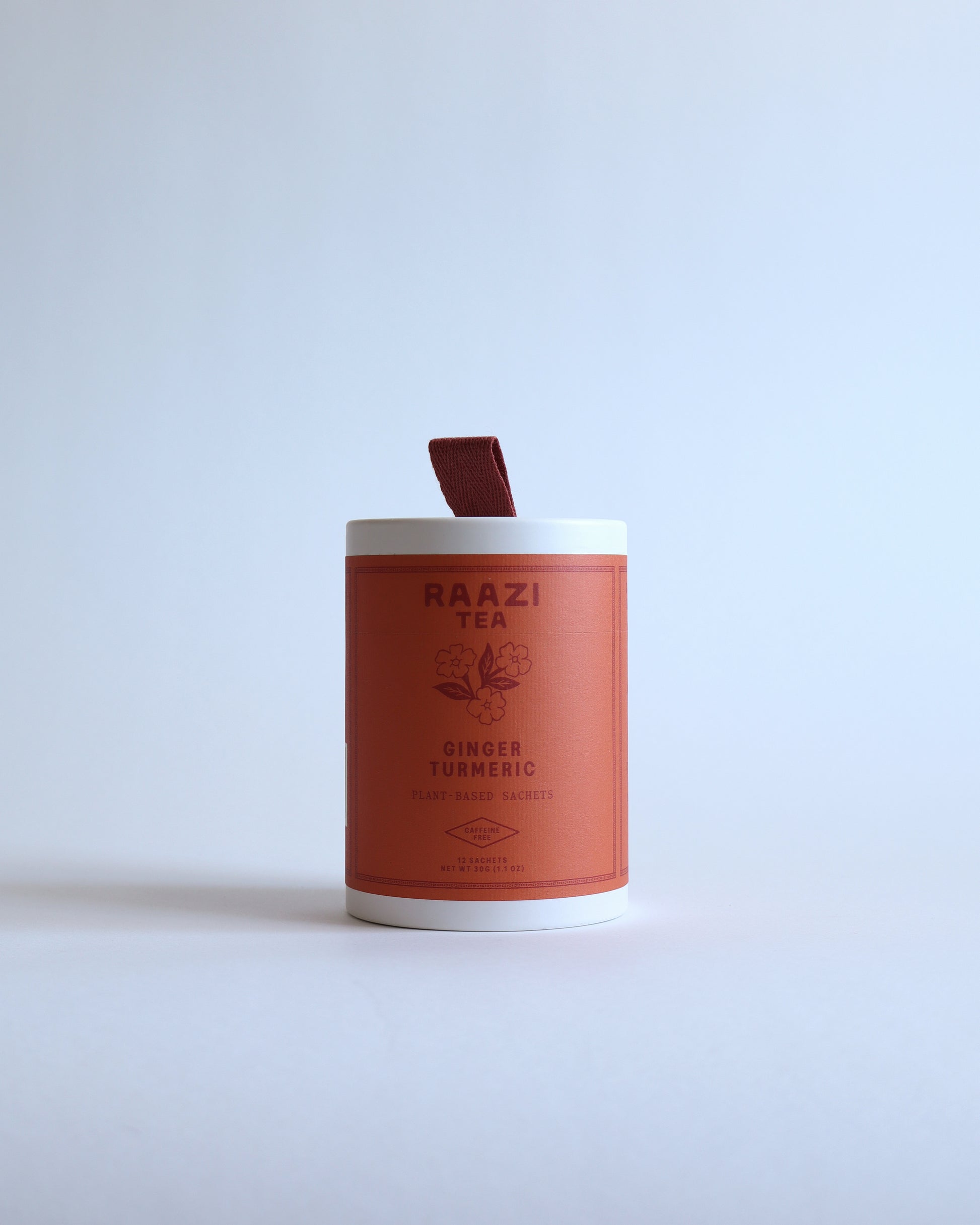 A caffeine-free herbal tea with an earthy, gently sweet blend of ginger and turmeric.
