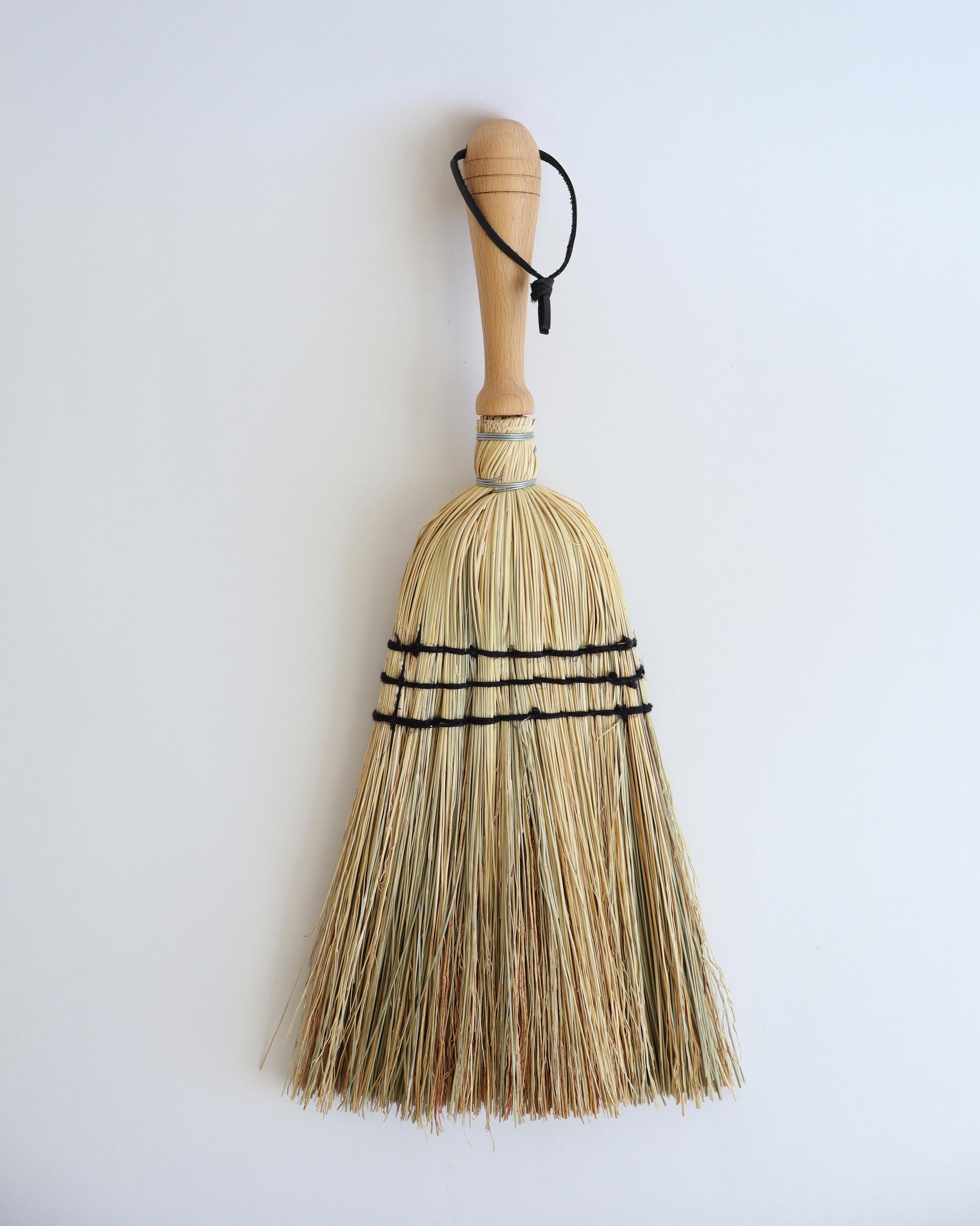 A natural hand brush made with rice straw and a wooden handle.