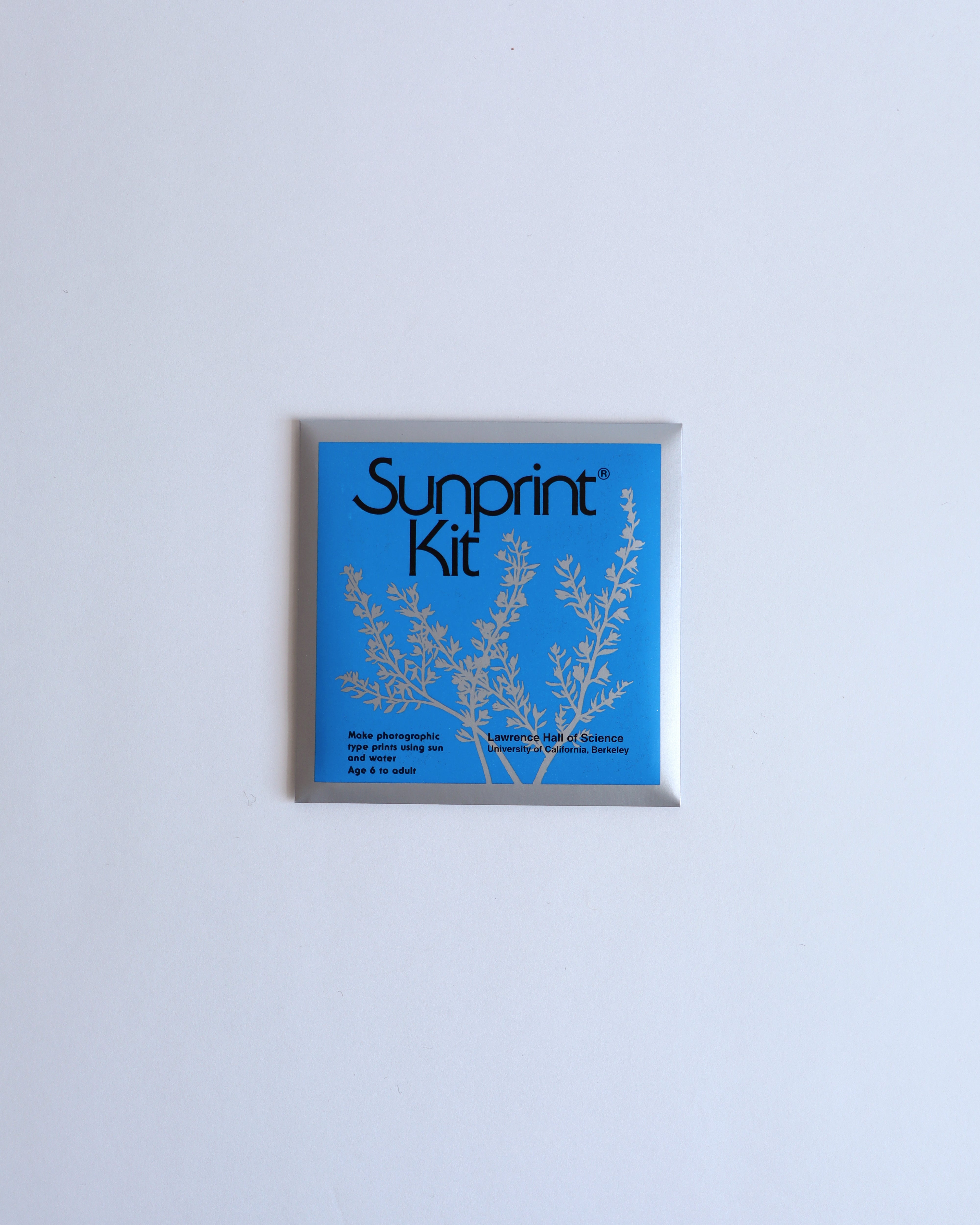 A sunprint kit that uses light-sensitive paper to create photographic prints with sunlight and water.