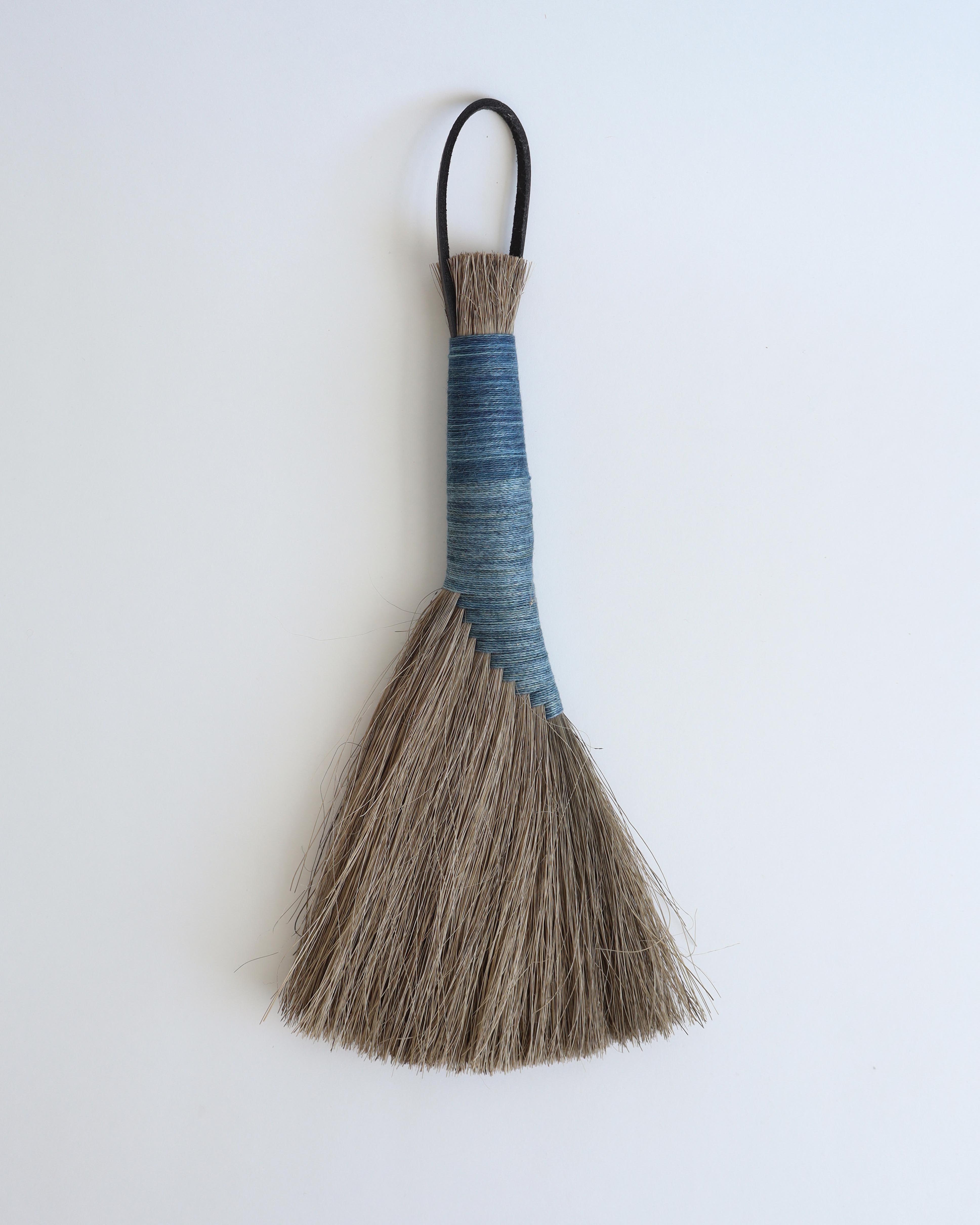 A soft hand broom made with dyed tampico fiber for light sweeping and dusting.
