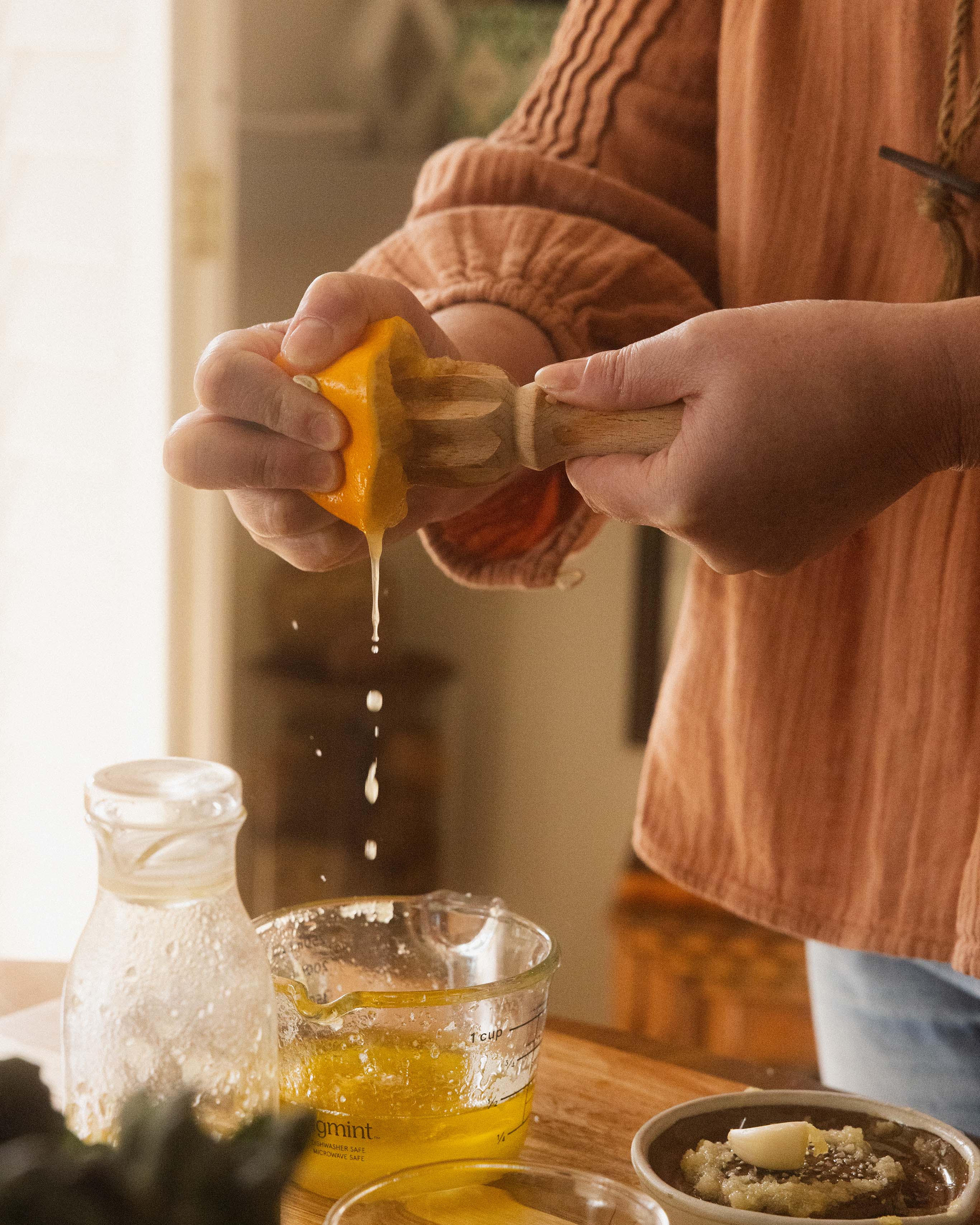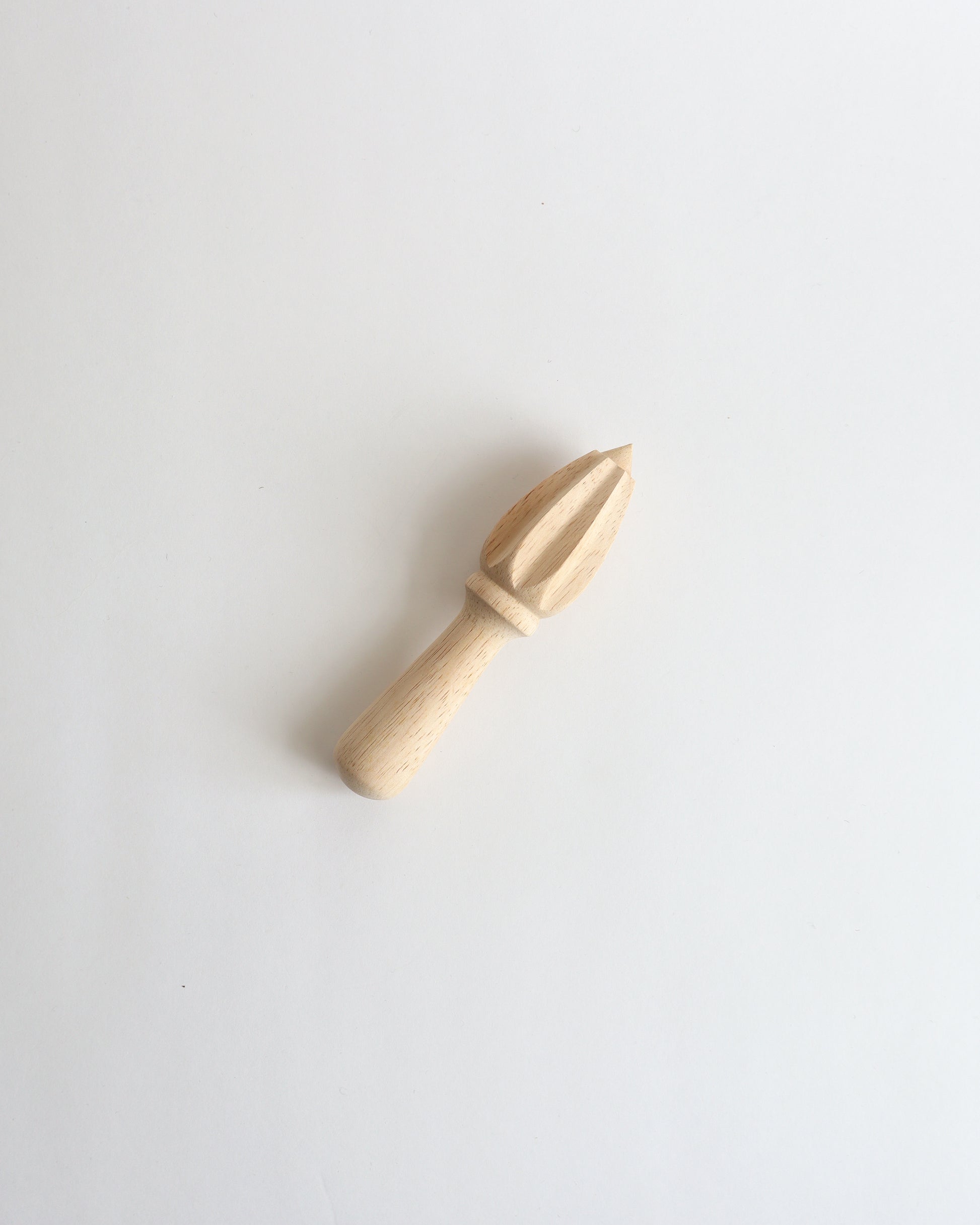 A wooden citrus reamer designed for juicing lemons, limes, and oranges. Simple, durable, and easy to use.